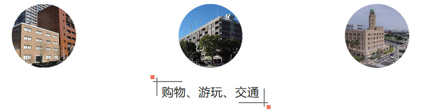 交通:来校上课、出门游玩,常用电车“京滨东北线”(京是东京,滨是横滨的意思)。常用电车站:“关内站”(距宿舍近)、“石川町站”(距学校近)。从上述两个车站出发,去往东京最大的车站“东京站”最快只需30分钟,到达年轻人的文化商业中心“涉谷站”也只需40分钟。以“关内站”、“石川町站”、“横滨棒球场”、“横滨公园”等为地标,轻松解决出行问题。